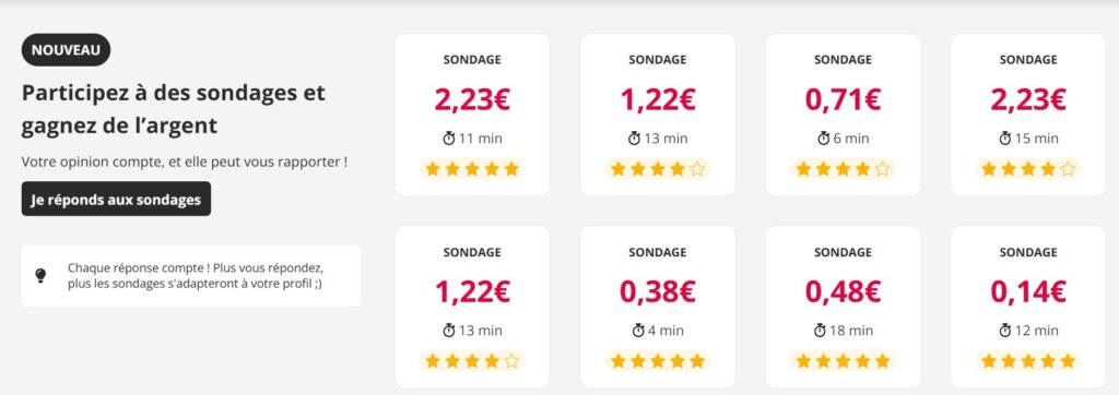 📊 4. Réponds à des sondages rémunérés
