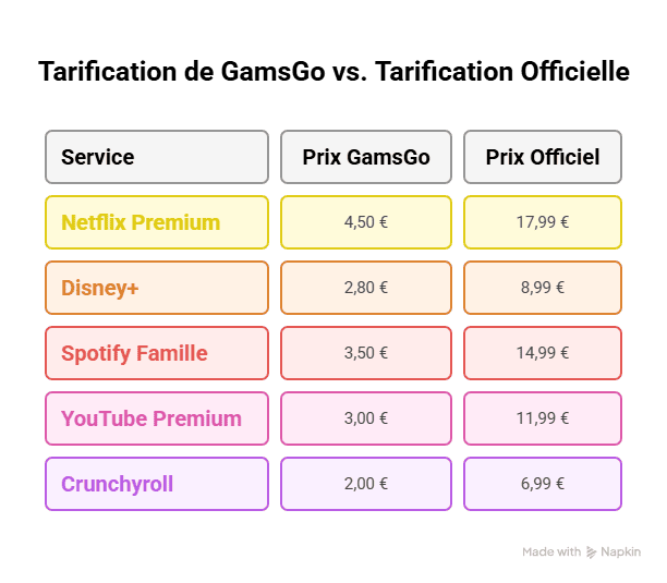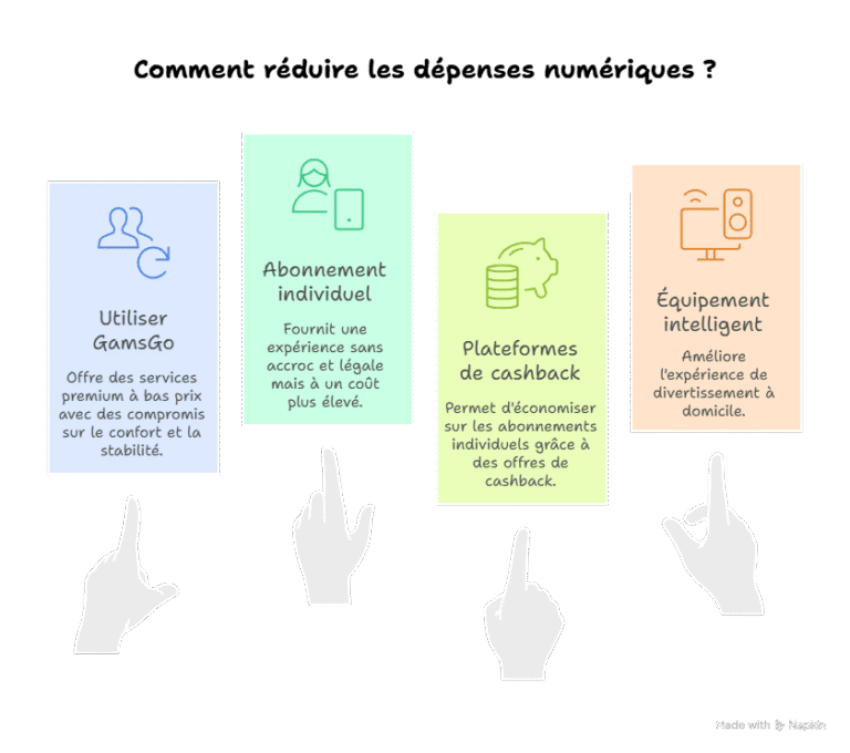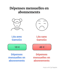 L’attrait principal de GamsGo réside dans l’économie substantielle réalisée chaque mois. En cumulant plusieurs services via la plateforme, un utilisateur peut facilement économiser jusqu’à 50 € par mois, soit plusieurs centaines d’euros à l’année.
